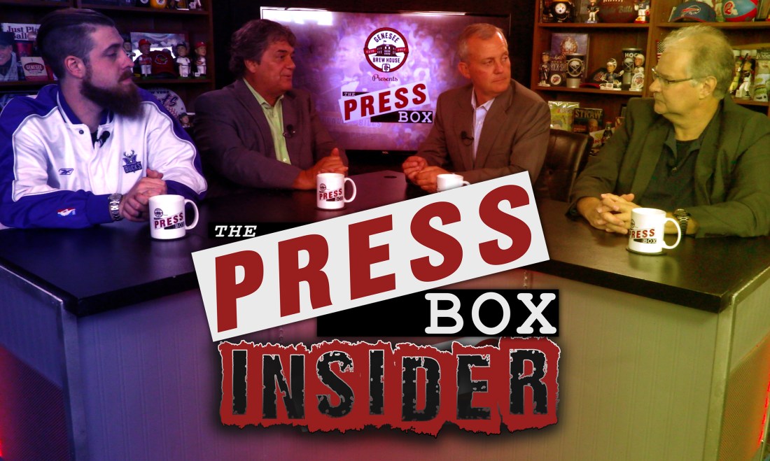 The Press Box, presented by the Genesee Brew House, airing September 1/2, 2018. Hosted by Bill Pucko, with guests Mike Catalana (13 WHAM Sports), Pat Duffy (WCMF Breakroom) and Kevin Oklobzija (Rochester Business Journal).