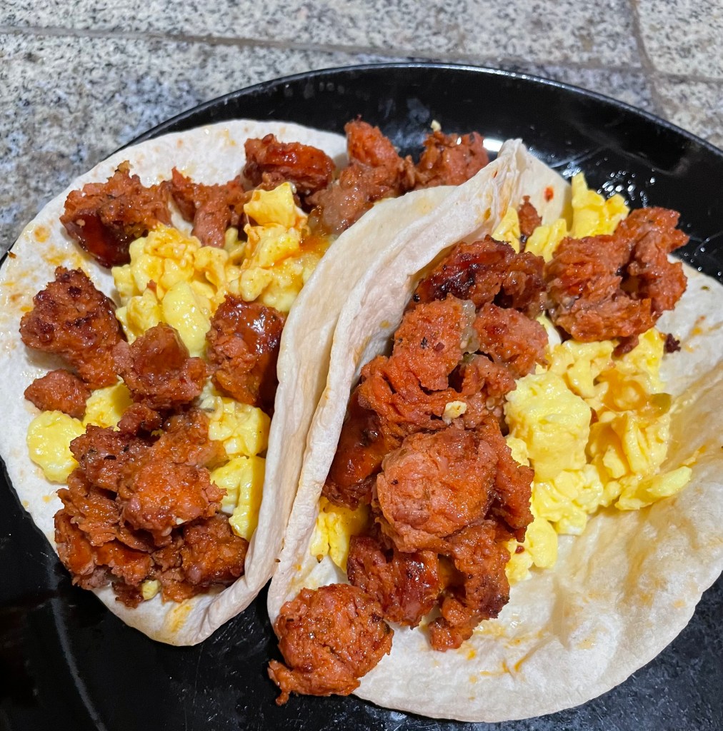 Breakfast Tacos! Sure, it is now after noon, but who wouldn’t like these any time of the day? I would! Packed with chorizo, eggs, cheese, hot sauce and salsa? Don’t threaten me with a good time! I had this awesome chorizo breakfast burrito years ago at an authentic Caribbean restaurant in Florida, and this tastes pretty darn similar. Nice job, Leese! Yum!