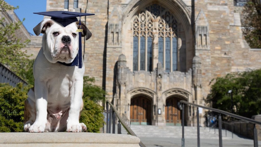 College football is full of such things. Handsome Dan was the first live mascot. A bulldog. 16 generations have represented Yale since 1899.