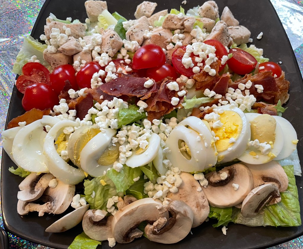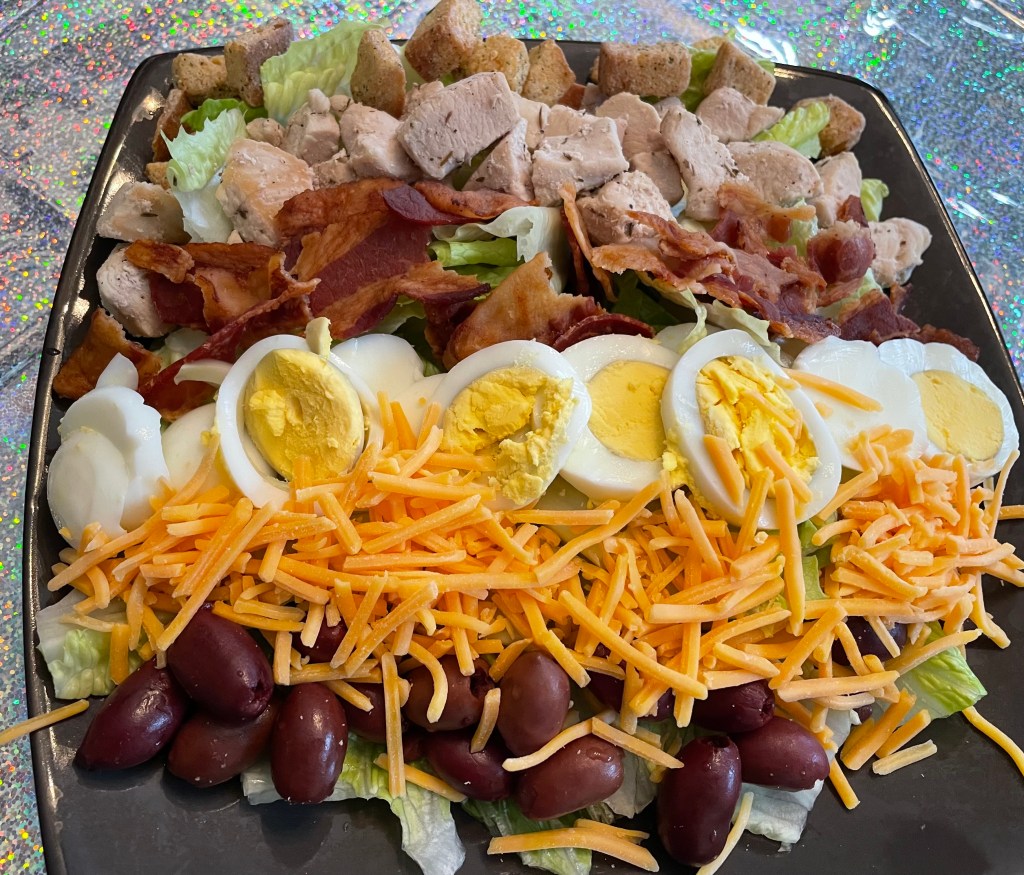 California Cobbs! Yeah, we (I) typically like to go big-time meat when we can for our NASCAR foods, but how can anyone complain about a Cobb Salad? It’s big, it is bad, and it has chicken, eggs, bacon, in my case, delicious Kalamata Olives. I don’t think either of us finished these earlier because of the sheer size alone, but my, were they tasty. Nice job, Leese!
