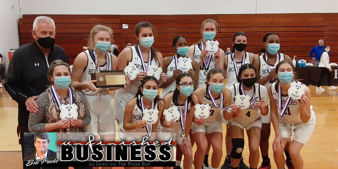 These days East Rochester football has merged with Gananda… a town that didn’t so much as exist when most of the Little Brown Jug games were played. But last fall, the combined schools won a program record 12 games and advanced to the state semifinals. And this month the East Rochester girls likewise became the first Bomber basketball team to play into the state semis. The tradition lives on. If you’re still going to call yourself the Home of Champions, it’s nice to be able to back it up.