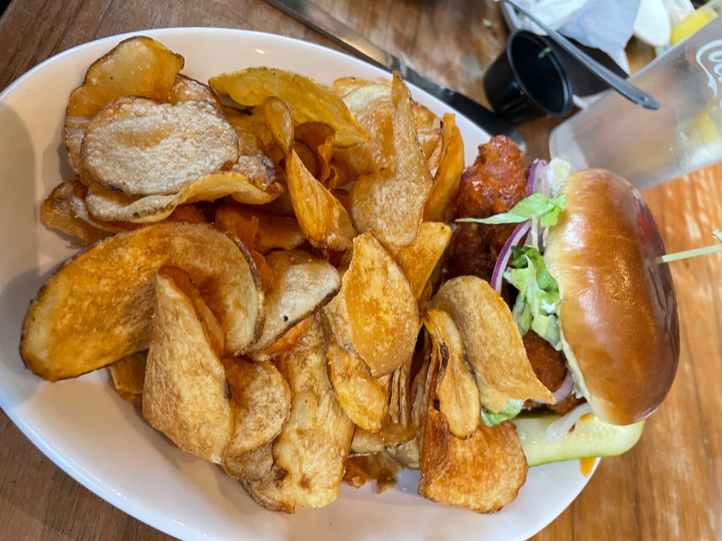 We picked it up again on Saturday with a slew of food and fun. First things first: the food! I’m about to let you in on a little secret.. Don’t tell anyone.. Yesterday, we were welcomed into..the Secret Sandwich Society. Yes. And they had awesome food! We caught the Brunch Menu so we had access to some meals we wouldn’t have in addition to the great sandwiches and burgers we would have naturally. Following that, we picked up smoothies at The Pit & The Peel (and some Chesapeake Crab chips) before setting out to Belle Isle, a cool island in the middle of the James River beneath the Robert E. Lee bridge. After that, we closed things out with Mason’s choice that day, Chef Mamusu Africanne on Main. Buffet style food here, I went with jerk chicken, curry chicken, mixed greens, mac ‘n cheese, a plantain, lemon chess, and some sweet cornbread (pictured below). Mason got some camera shy fried trout in addition to most of the same. Lisa went a non-meat route with a slew of rice dishes (not pictured). We have run the gamut on food types this trip, and we’ve still got Waffle House awaiting us on the way home.